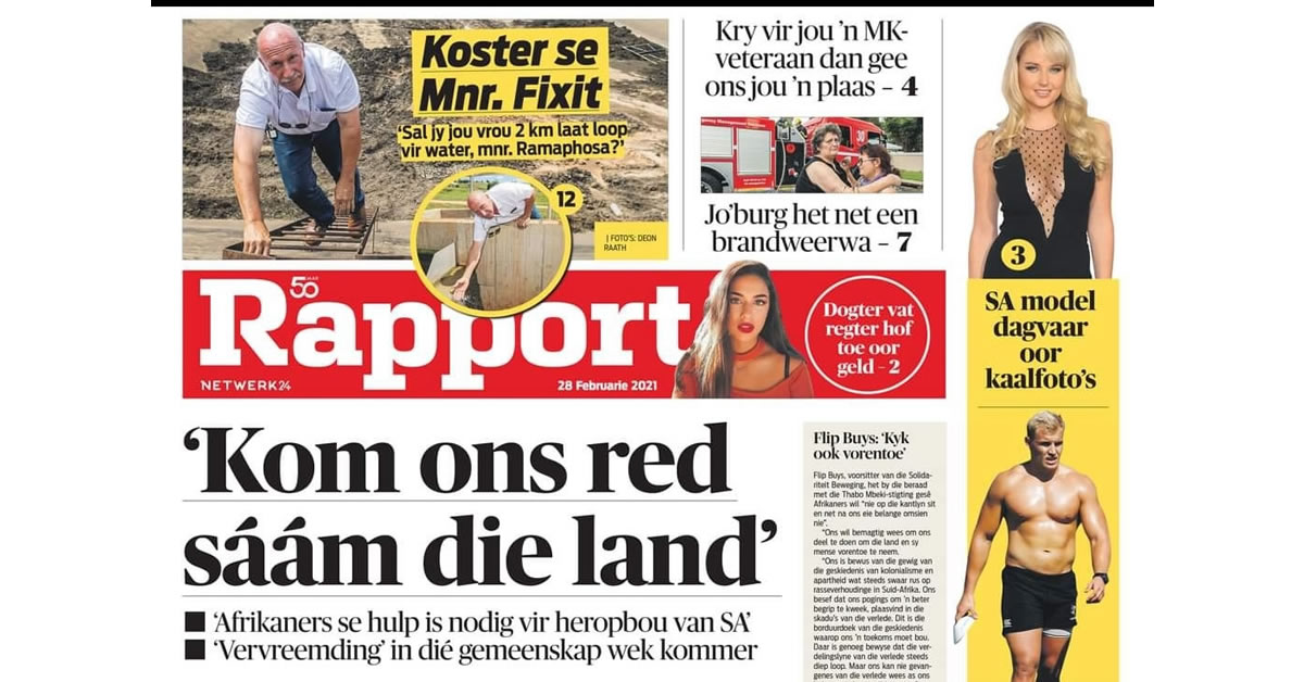 Afrikaners se kundigheid is noodsaaklik om Suid-Afrika na jare van wanbestuur te herbou en daarom is dit noodsaaklik dat die groep se gevoel van uitsluiting en “vervreemding” dringend getakel word.